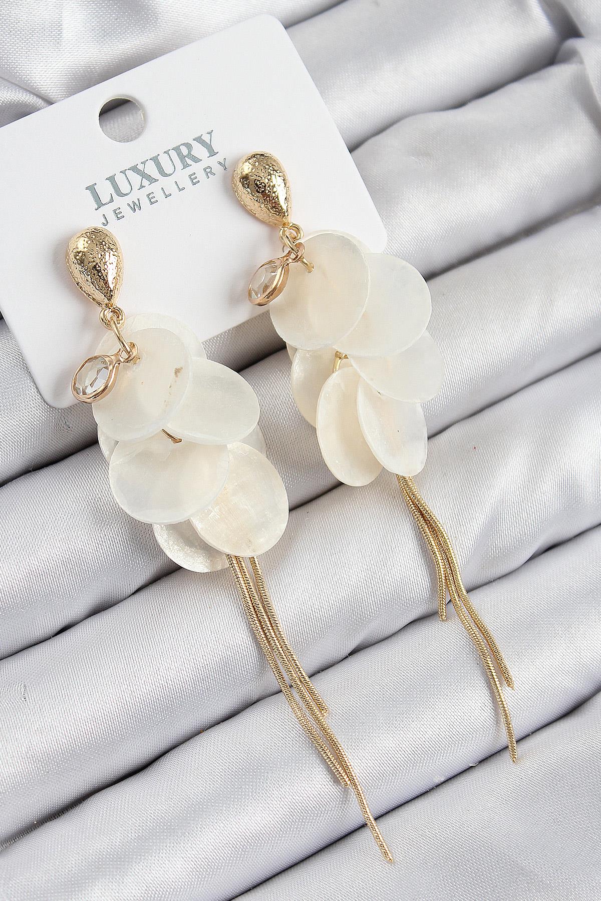 Pirinç Zirkon Taşlı Sallantılı Sedef Model Gold Renk Kadın Küpe