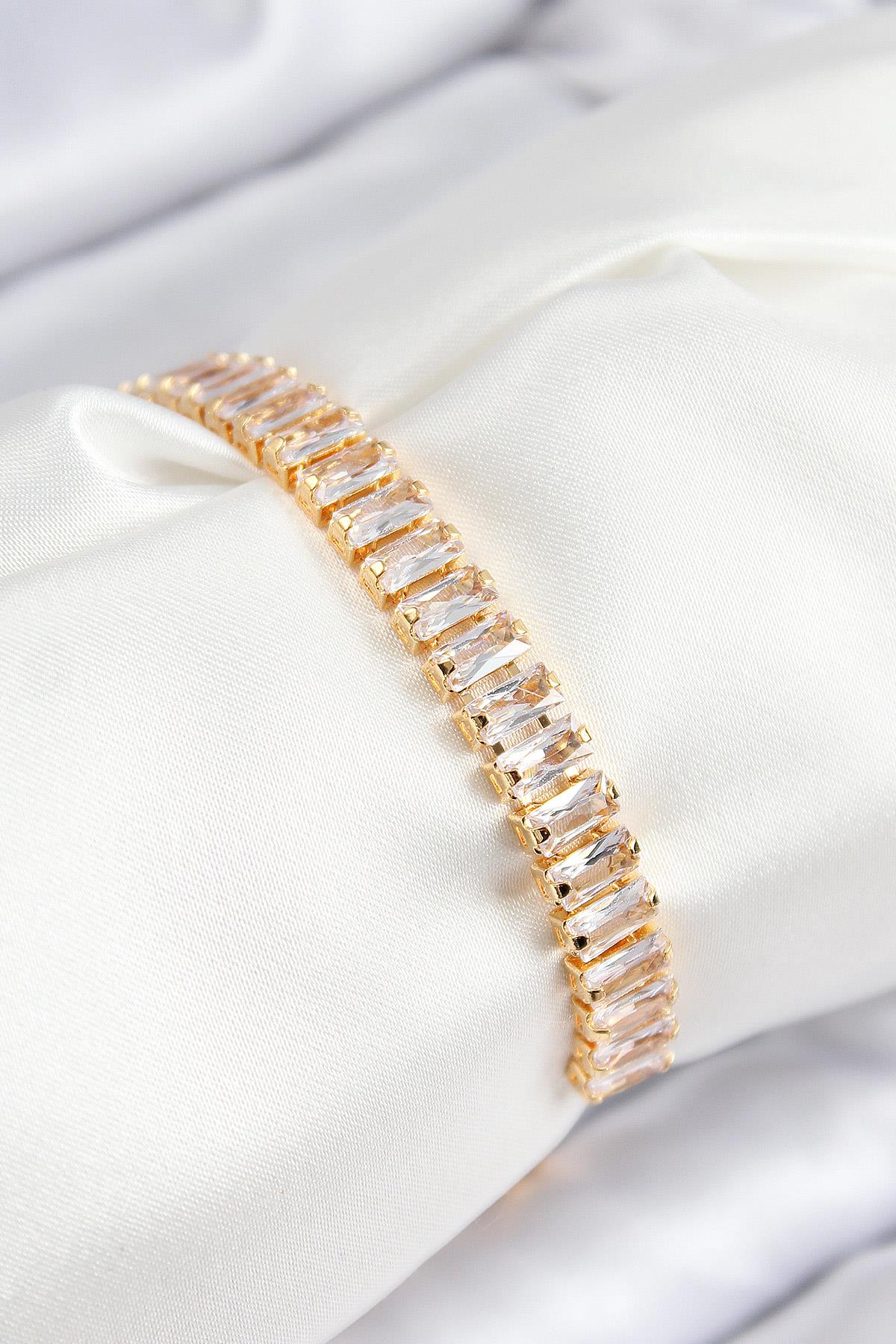 Pirinç Zirkon Taşlı Su Yolu Model Gold Renk Asansörlü Kadın Bileklik