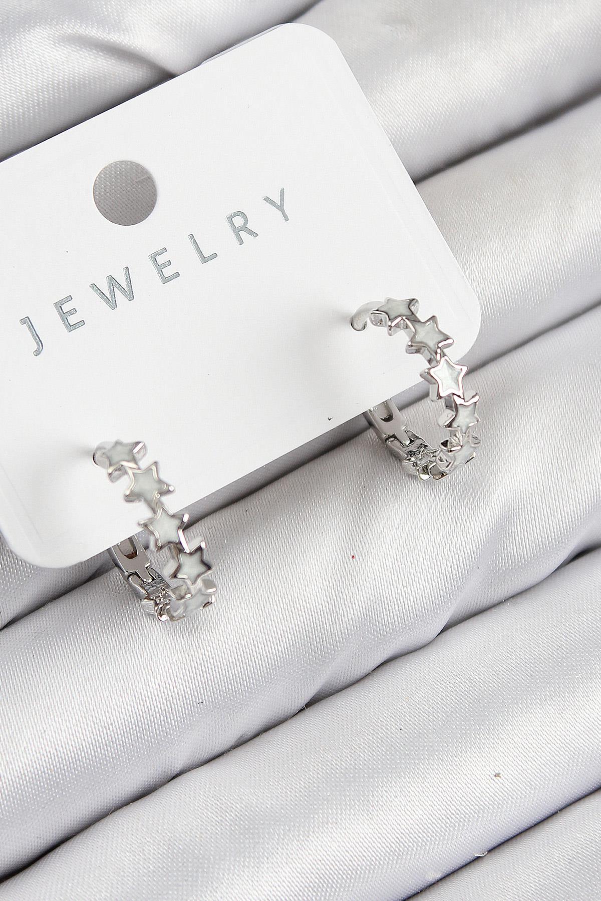 Pirinç Zirkon Taşlı Yıldız Model Gümüş Renk Kadın Küpe