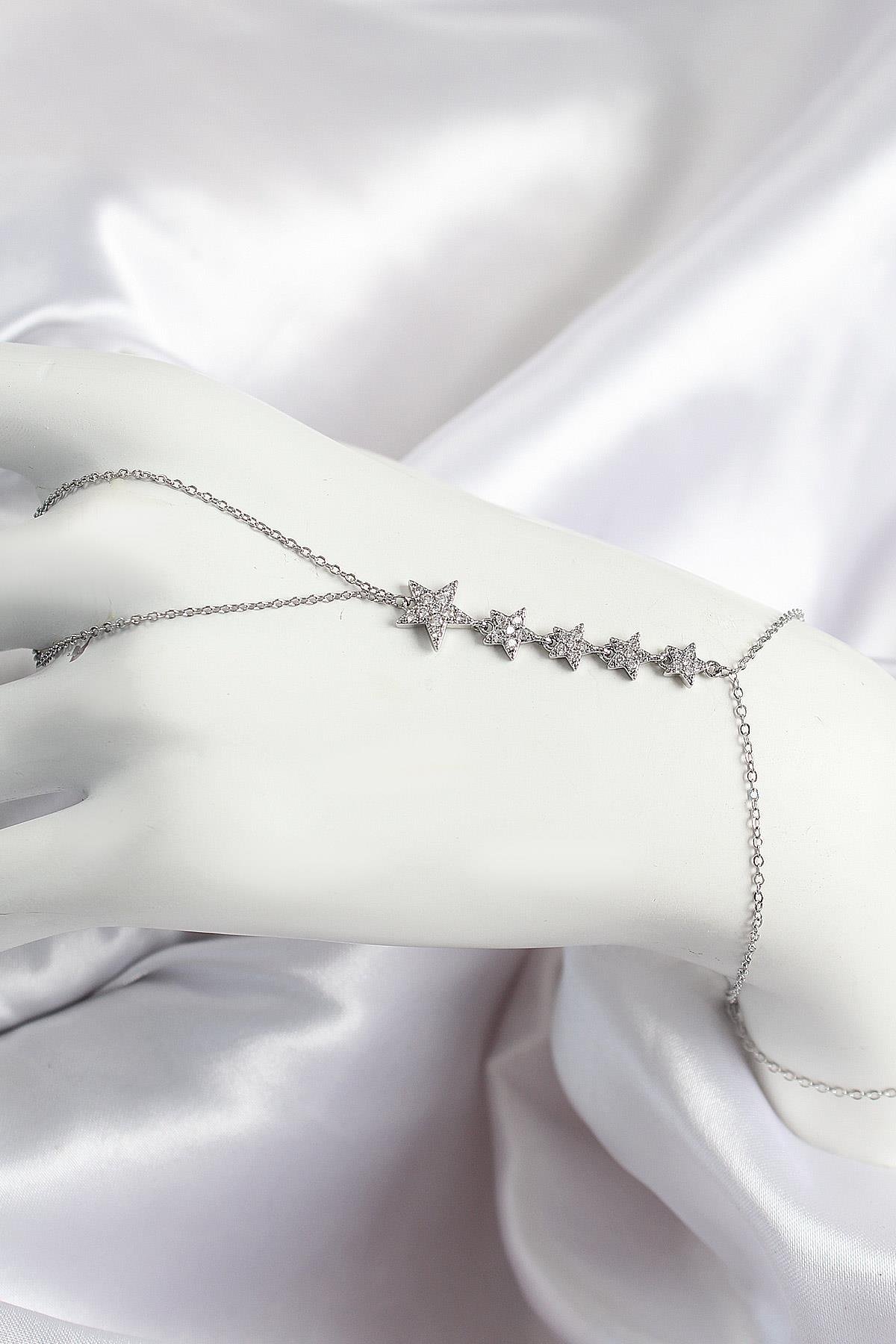 Pirinç Zirkon Taşlı Yıldız Model Gümüş Renk Kadın Şahmeran