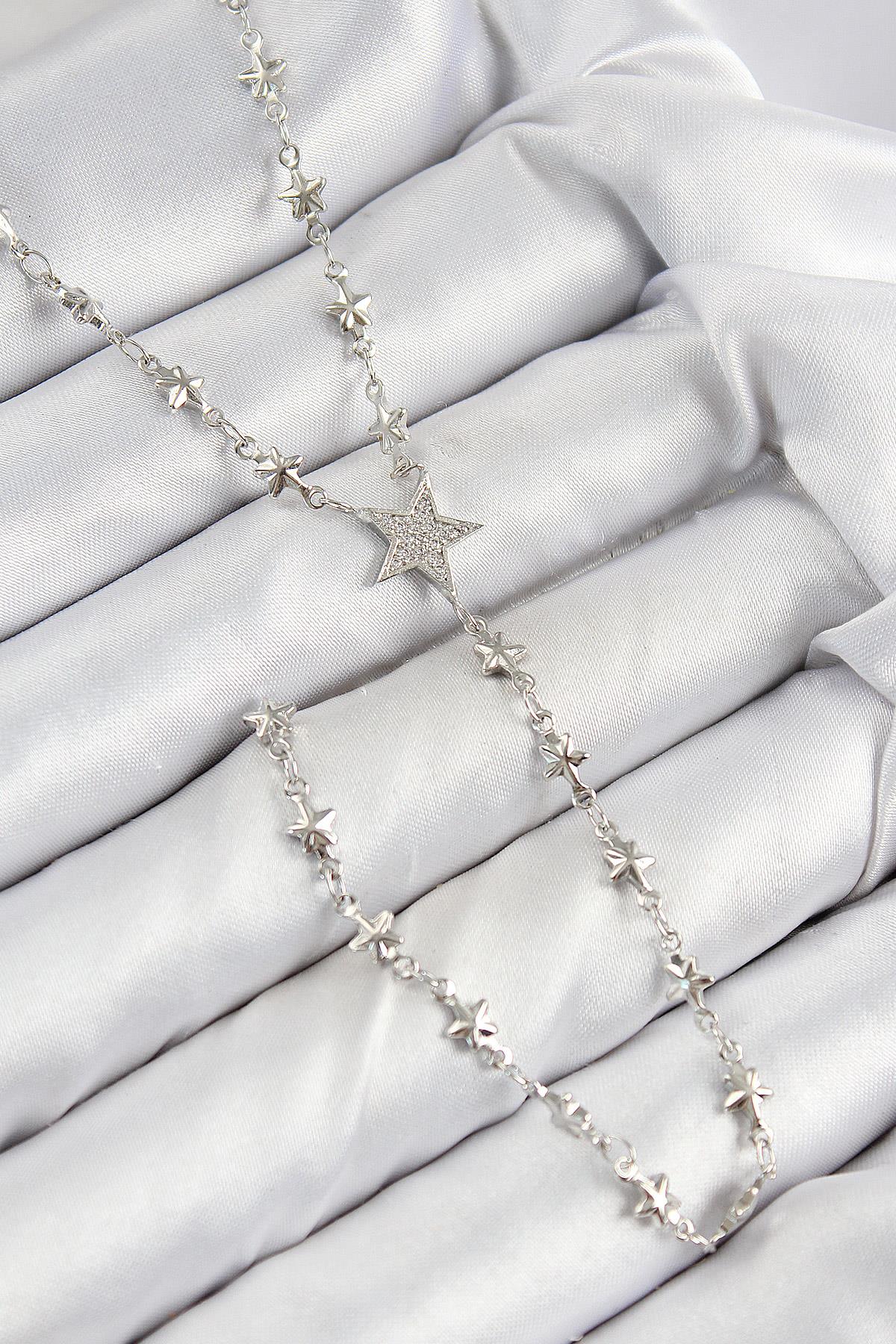 Pirinç Zirkon Taşlı Yıldız Model Gümüş Renk Y Kolye