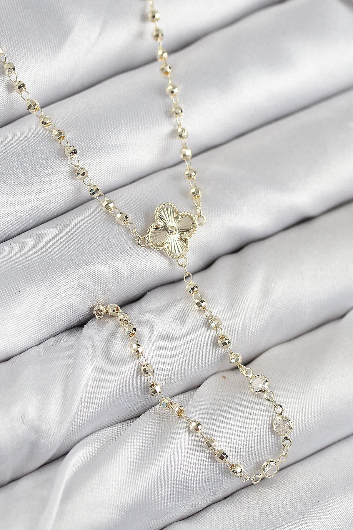 Pirinç Zirkon Taşlı Yonca Model Gold Renk Kadın Y Kolye
