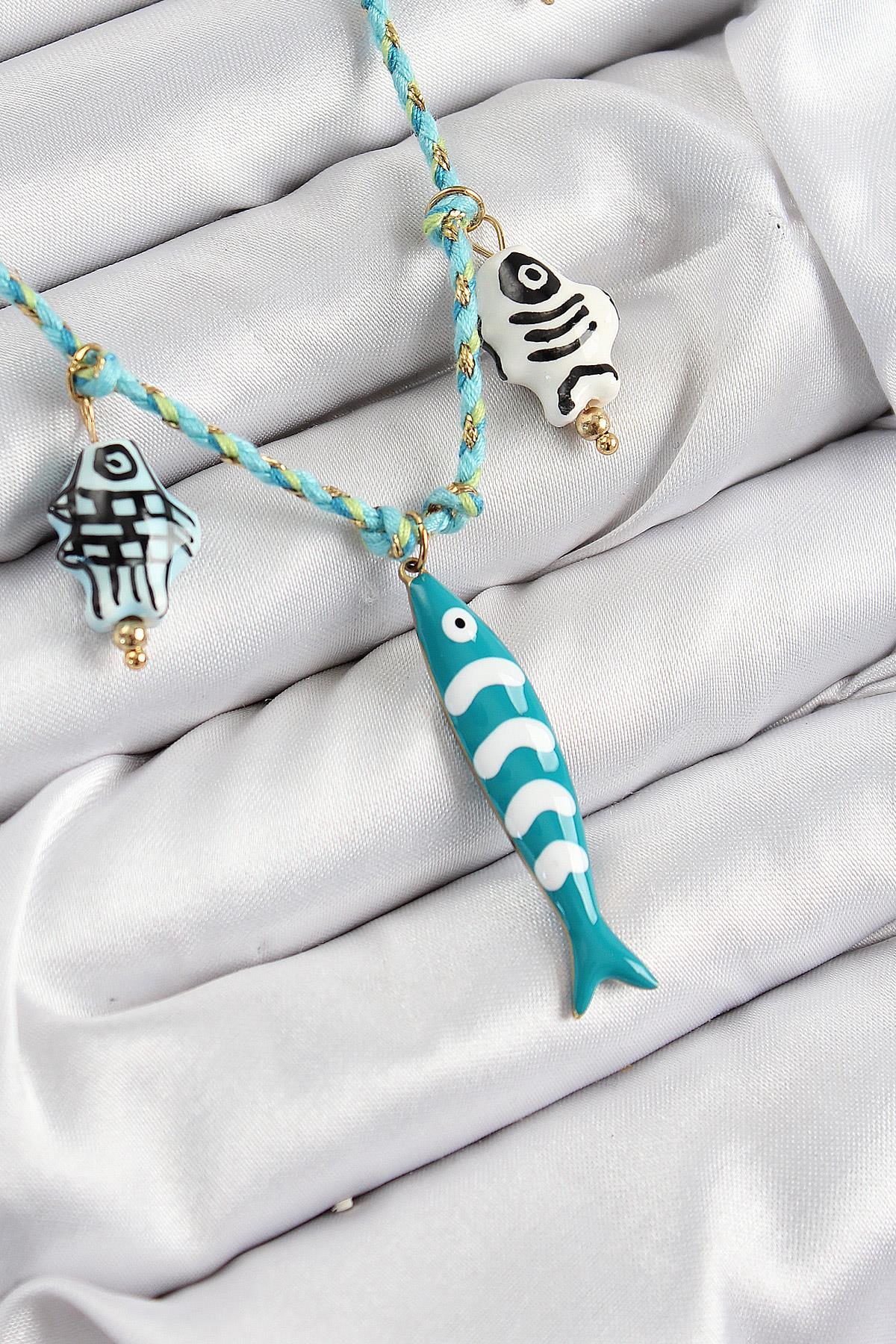 Seramik Motifli Balık Figürlü Model Mavi İp Kadın Kolye
