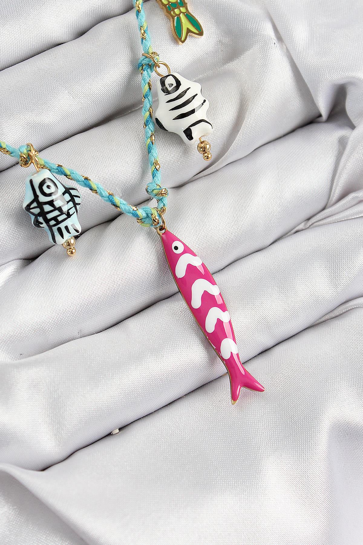 Seramik Motifli Pembe Balık Figürlü Model Mavi İp Kadın Kolye