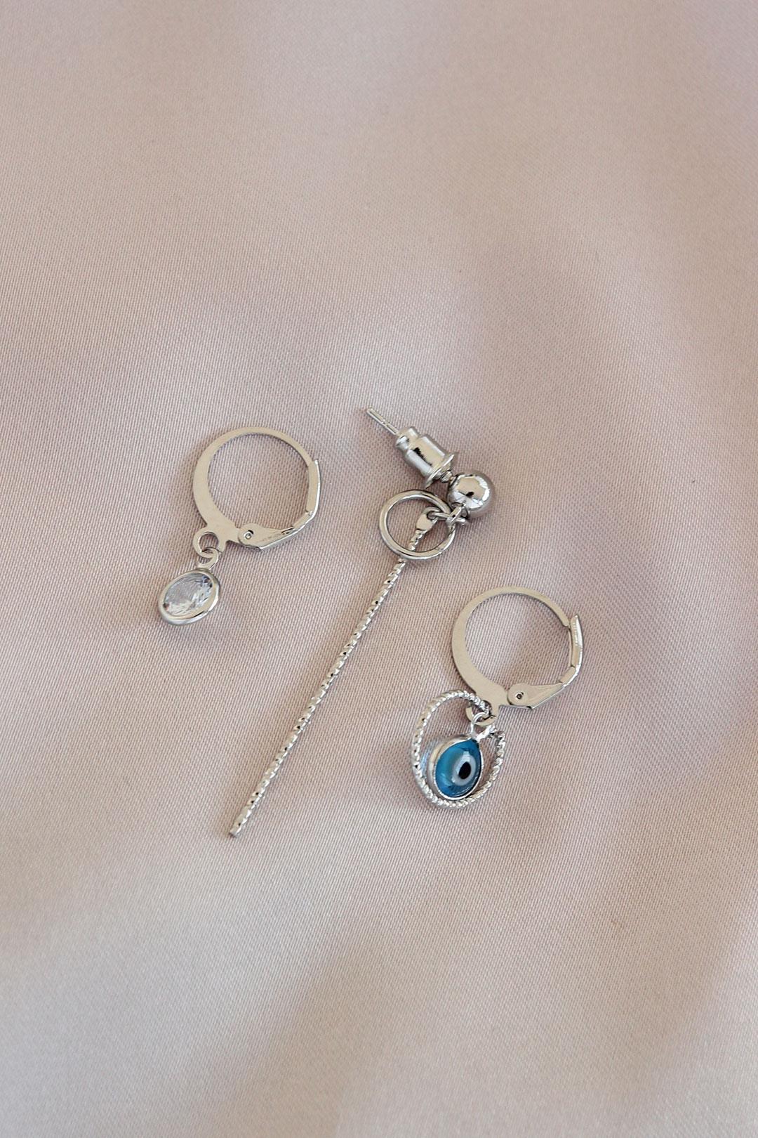 Silver Renkli Nazar Boncuklu Metal Küpe Seti