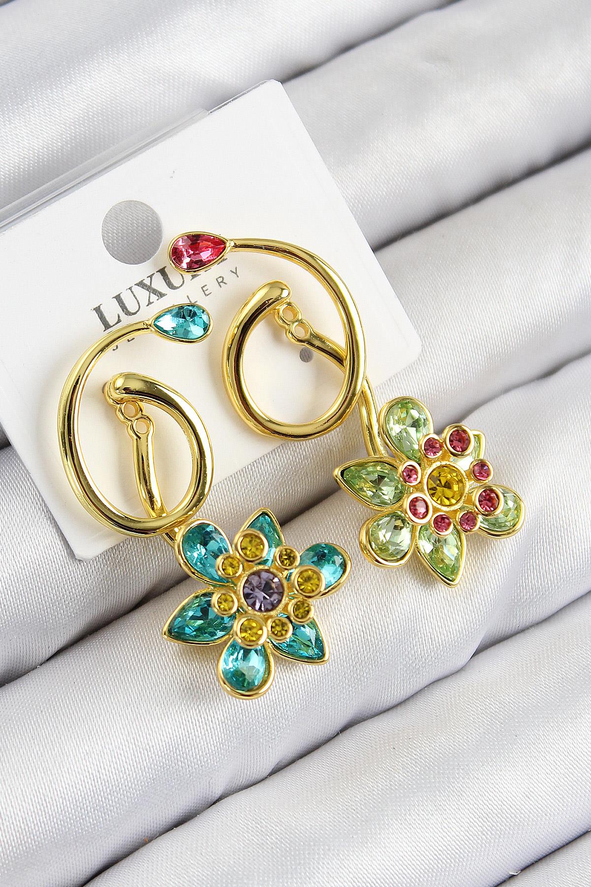 VIP Pirinç Zirkon Taşlı Çiçek Model Gold Renk Kadın Küpe