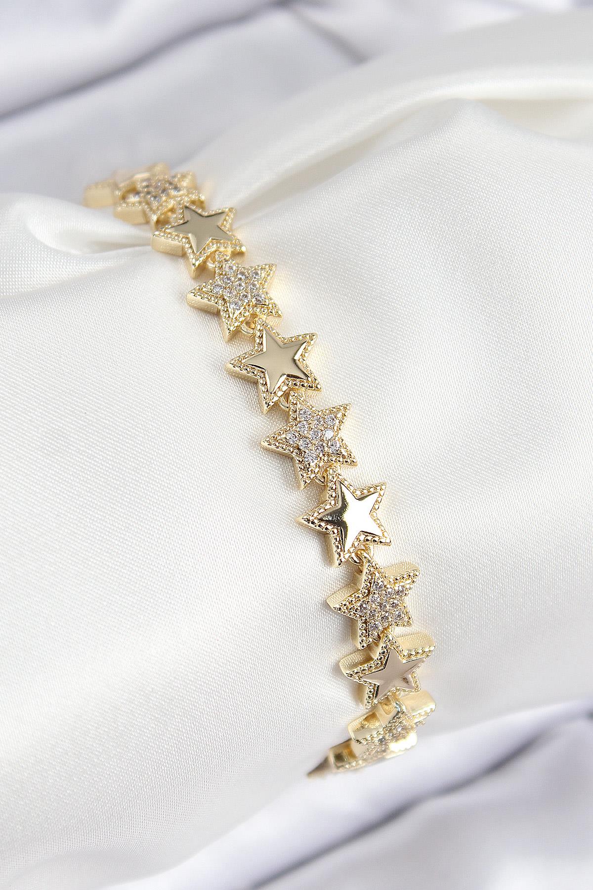 VIP Pirinç Zirkon Taşlı Yıldız Model Gold Renk Kadın Bileklik