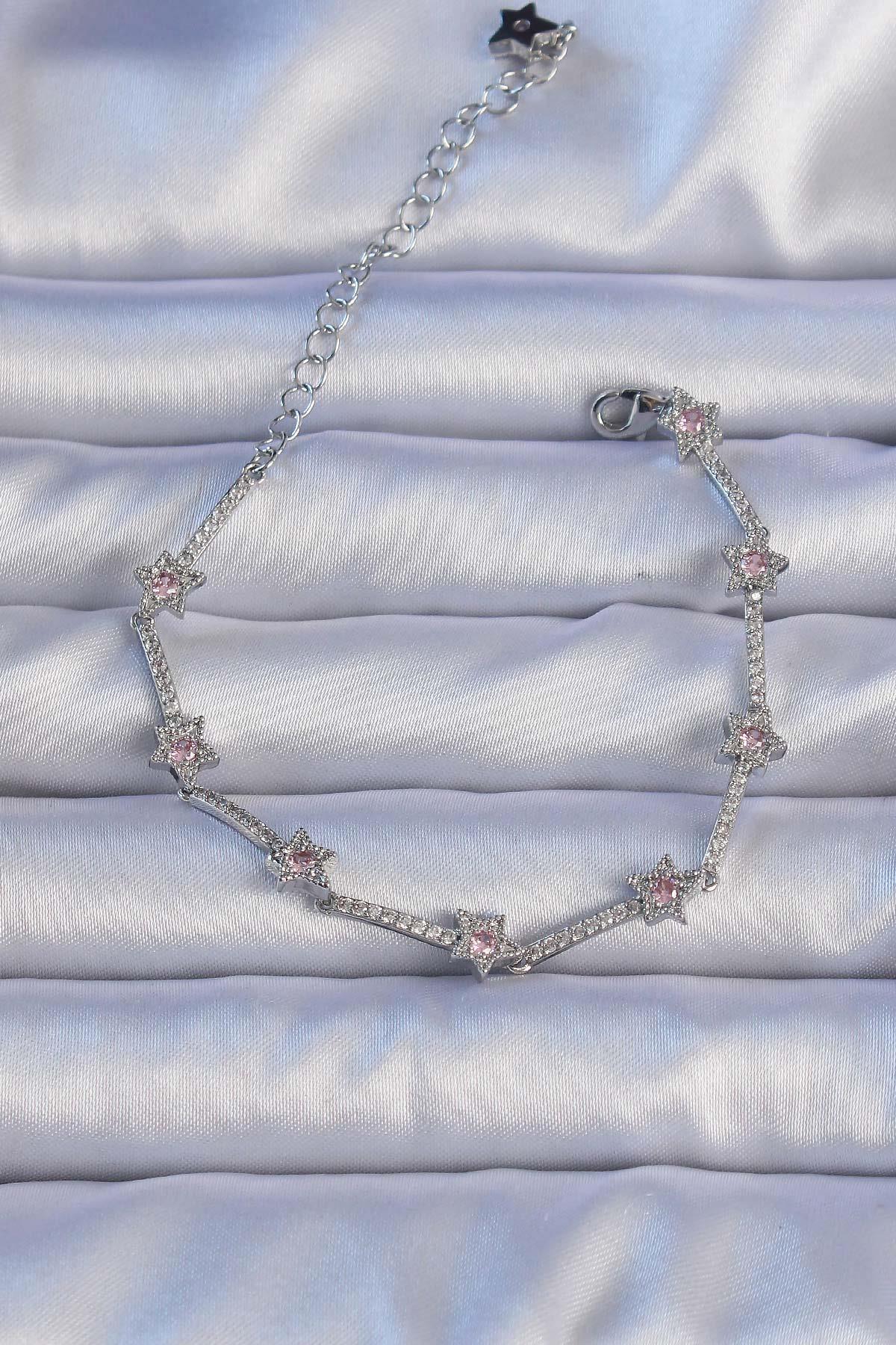 Vip Seri Pirinç Gümüş Renk Zirkon Taşlı Halley Yıldız Model Bileklik