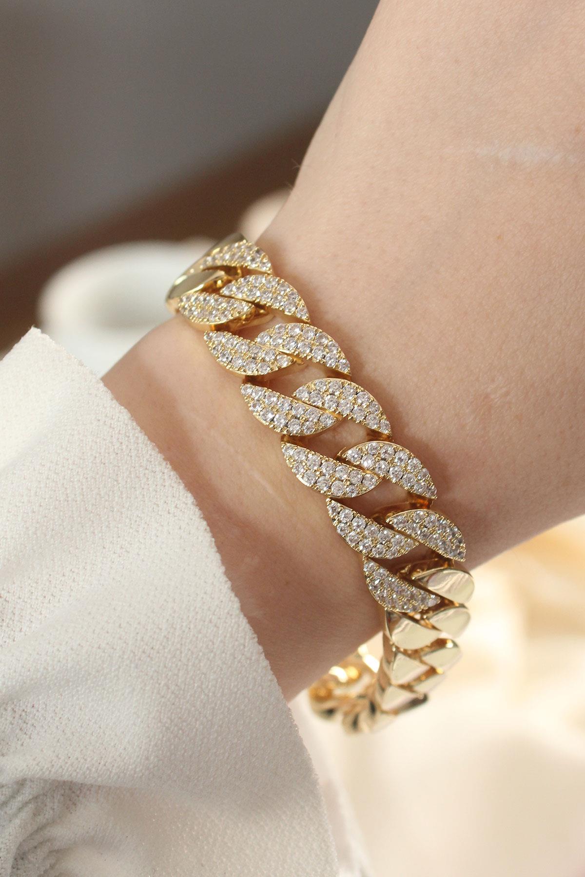 Vip Seri Pirinç Ortası Zirkon Taşlı Gold Renk Gurmet Bileklik