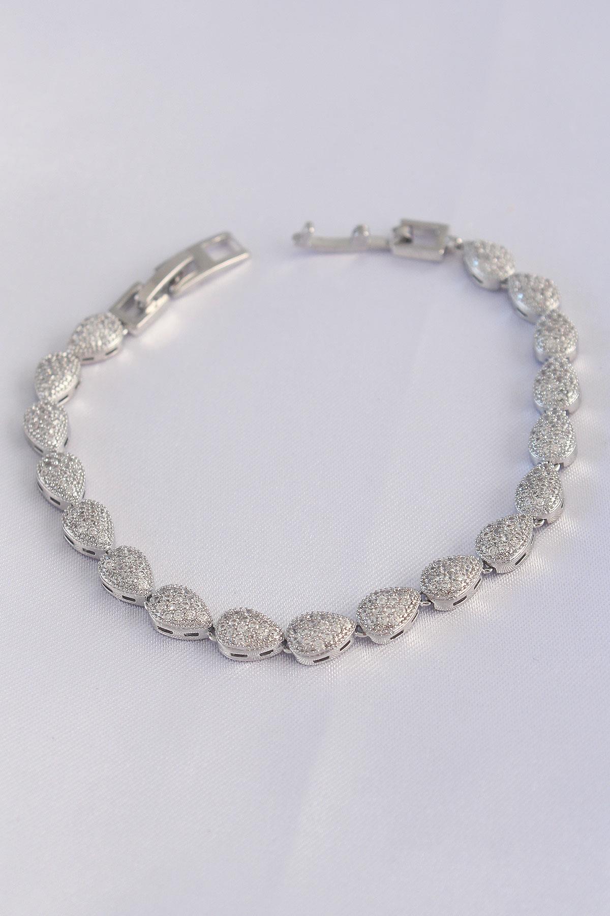 Vip Seri Pirinç Zirkon Taşlı Gümüş Renk Damla Model Bileklik