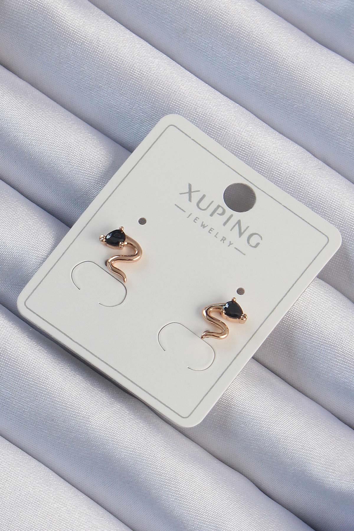 Xuping Rose Renk Siyah Zirkon Taşlı Kıvrımlı Küpe