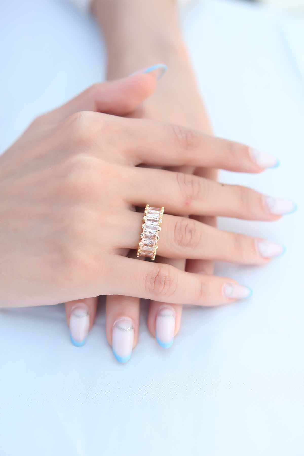 Zirkon Taşlı Baget Gold Renk Kadın Yüzük