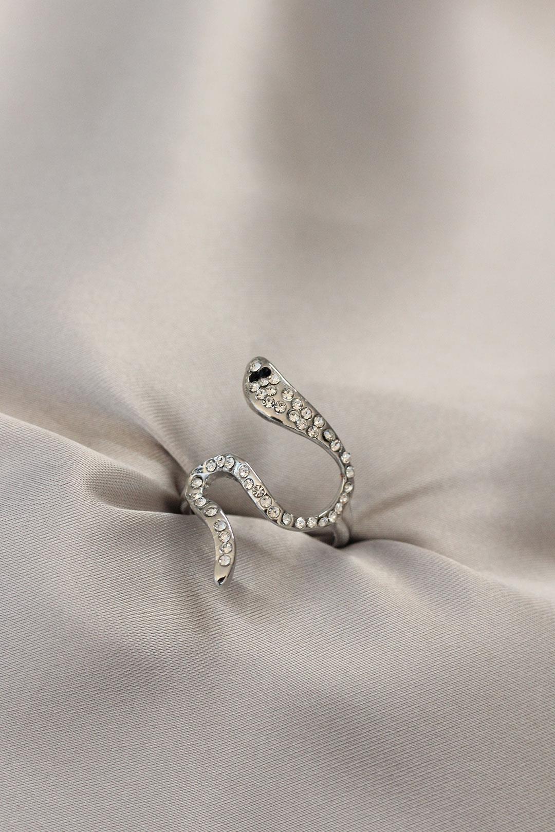 Zirkon Taşlı Gümüş Renk Yılan Yüzük