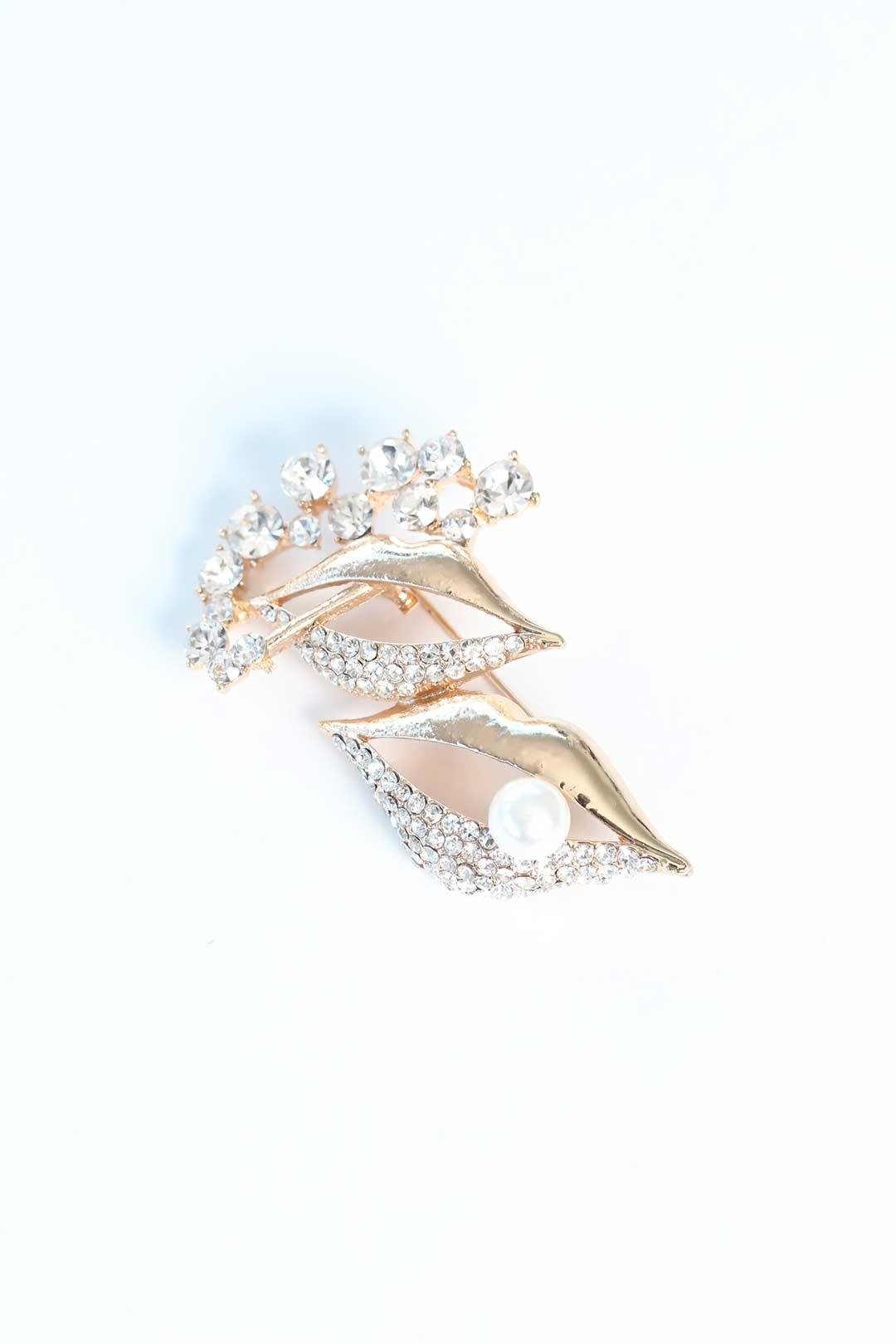 Gold renk metal dudak tasarım Zirkon Taşlı Metal Broş