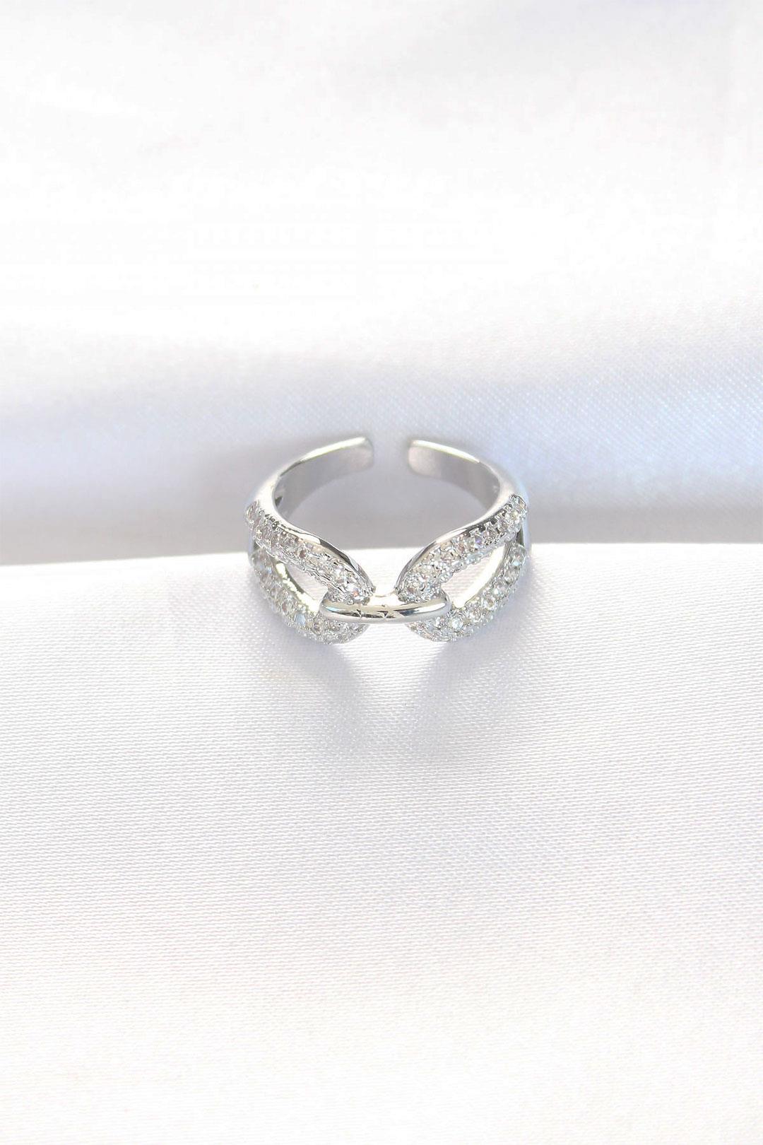 Zirkon Taşlı Silver Renk Ayarlanabilir Yüzük